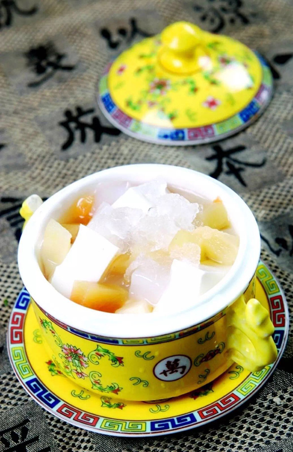 白白的豆腐上面點綴著兩只紅綠櫻桃,很有賣相,五塊錢一份。