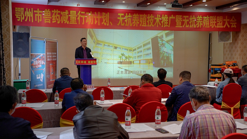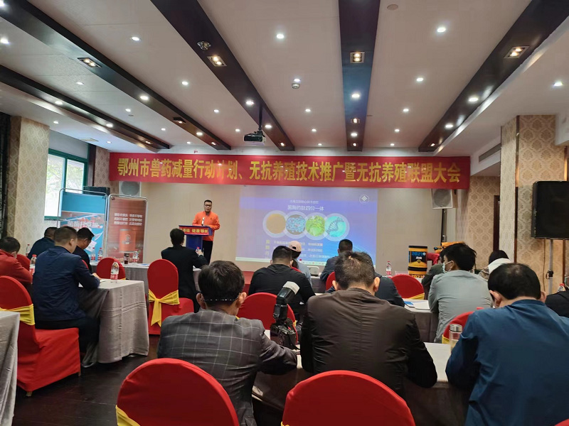 會(huì)上,鄂州市畜牧獸醫(yī)服務(wù)中心相關(guān)負(fù)責(zé)同志對(duì)《湖北省獸用抗菌藥使用減量化行動(dòng)工作方案(2021-2025)》進(jìn)行了解讀,大禹公司專家作無抗養(yǎng)殖專題技術(shù)講座,參會(huì)畜禽養(yǎng)殖場(chǎng)及相關(guān)企業(yè)簽署了無抗養(yǎng)殖《倡議書》,養(yǎng)殖場(chǎng)、養(yǎng)殖專家就無抗養(yǎng)殖技術(shù)普及工作進(jìn)行了深入交流。