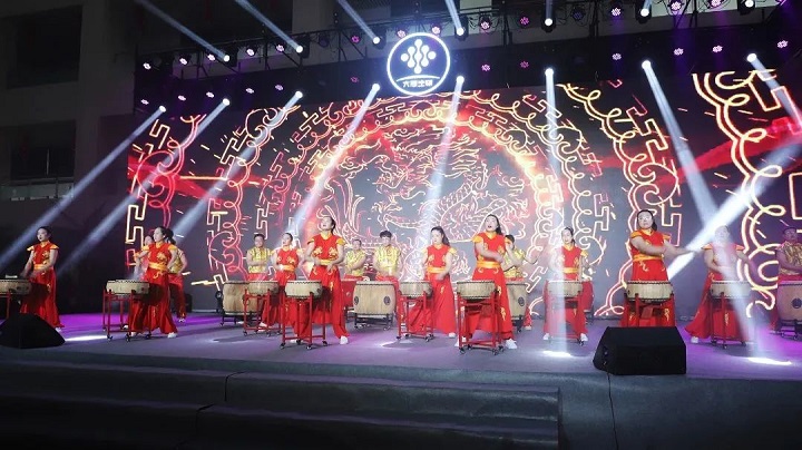 慷慨激昂的擊鼓表演《鼓舞中國(guó)》。