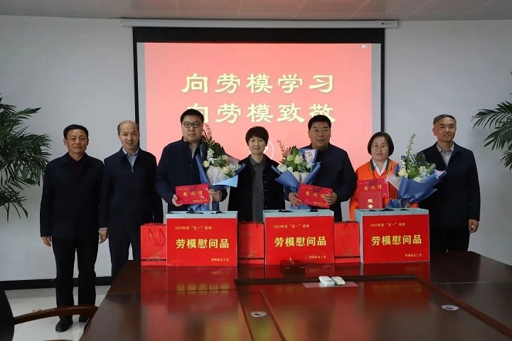 在五一國際勞動節(jié)到來之際,芮城縣委副書記楊春霞、縣總工會黨組書記、常務副主席張亞波到大禹生物,慰問山西省五一勞動獎章獲得者、運城市勞動模范、大禹生物黨支部書記、董事長閆和平;全國五一勞動獎章獲得者、山西省勞動模范、大禹生物總經理閆凌鵬;并為今年剛剛榮獲“運城市勞動模范”榮譽稱號的大禹生物質保部經理黨亞朋授獎。