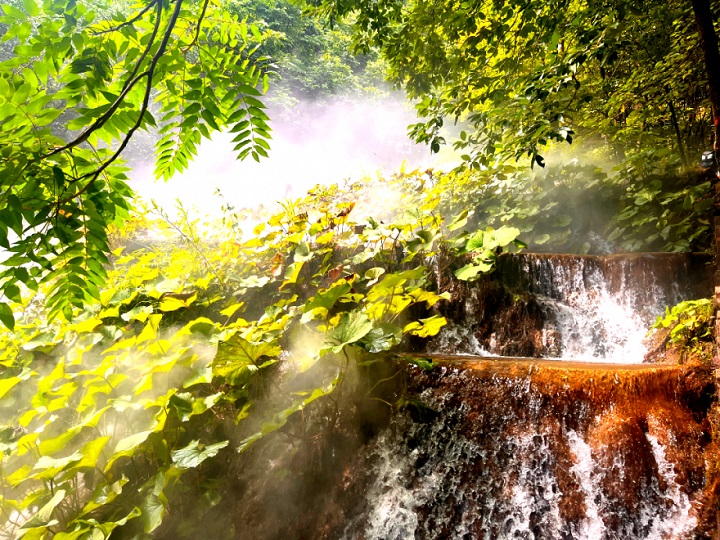 一路上,以水為主旋律的龐大瀑布群、綠蔭掩映、曲徑通幽,流泉飛瀑、小橋流水,讓人如臨仙境,流連忘返。
