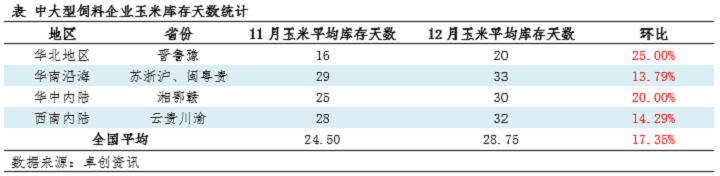 截至12月底,中大型飼料企業(yè)玉米庫存均有增加,且多數(shù)庫存在1個(gè)月以上。進(jìn)入1月份,南方飼料企業(yè)備貨基本收尾,以訂單合同為主,高價(jià)現(xiàn)貨簽單意向不高。且生豬價(jià)格持續(xù)低迷,終端養(yǎng)殖利潤(rùn)在盈虧線浮沉,春節(jié)前銷區(qū)玉米購銷偏淡,玉米價(jià)格實(shí)質(zhì)性上行空間或偏窄。
