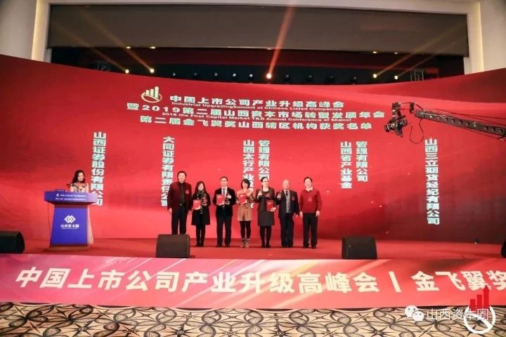 本次高峰會舉行了晉粵上市公司產(chǎn)業(yè)升級基金籌備簽約儀式。當(dāng)天, 峰會現(xiàn)場對2018年表現(xiàn)優(yōu)秀的山西上市公司、新三板掛牌公司、轄區(qū)機(jī)構(gòu)頒發(fā)“金飛翼獎”進(jìn)行了集中表彰。