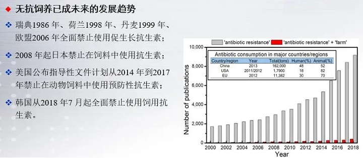 隨著抗生素在動物體內(nèi)產(chǎn)生耐藥性以及對生態(tài)環(huán)境的污染,無抗飼養(yǎng)已成為未來畜牧業(yè)的發(fā)展趨勢,國家自2020年7月1日起禁止使用飼用抗生素,同時我國已具備進(jìn)入無抗飼料的時代基礎(chǔ)。