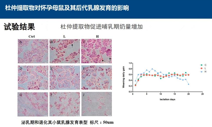 杜仲提取物對懷孕母鼠及后代乳腺發(fā)育的實驗可以得出杜仲提取物可以促進懷孕期乳腺增殖、促進哺乳期奶量增加、促進青春期乳腺導(dǎo)管增殖和末端芽結(jié)構(gòu)(TEB)的形成。