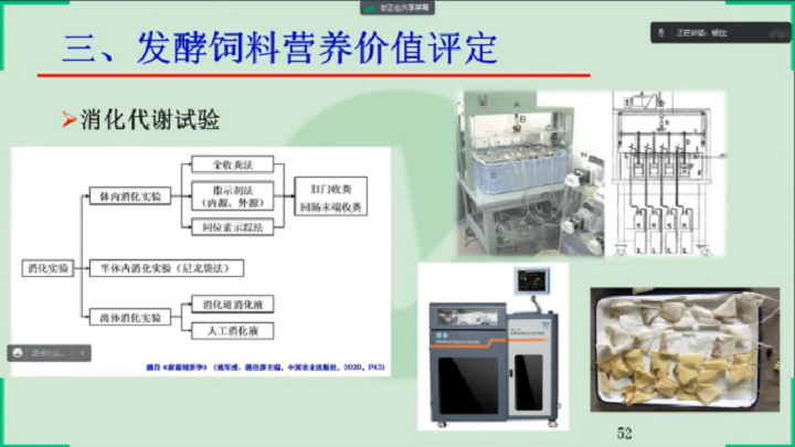 楊教授從發(fā)酵飼料進(jìn)展概述、發(fā)酵飼料質(zhì)量評價(jià)與檢測以及發(fā)酵飼料營養(yǎng)價(jià)值評定三個(gè)方面講解了發(fā)酵飼料質(zhì)量檢測與營養(yǎng)價(jià)值評定。